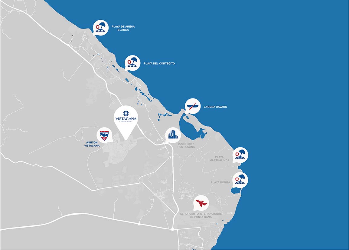 Located within the Vistacana project, with an area of more than 60,000 m². Both internal and external access routes, for the residents of the project and for the entire community of Punta Cana, Bavaro, Veron and nearby areas.